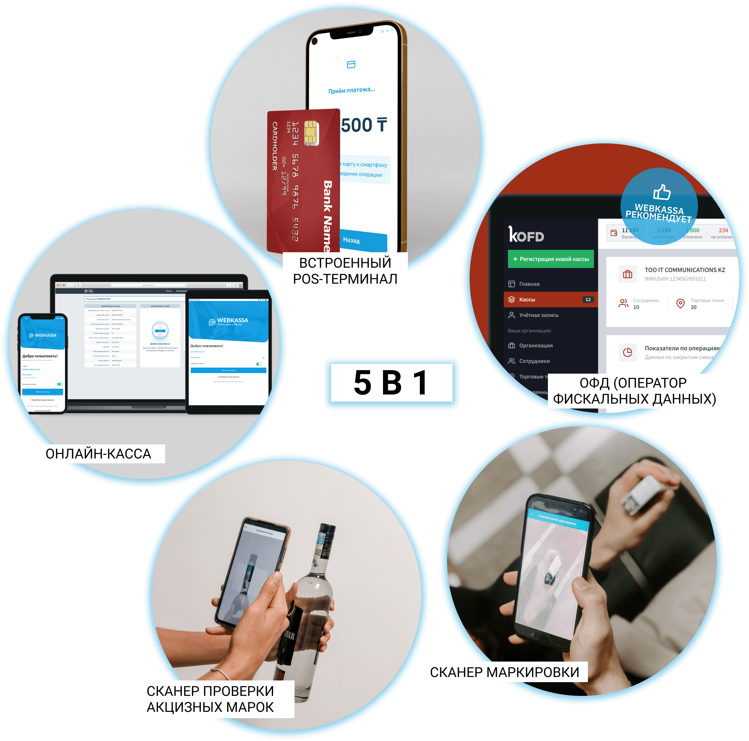 встроен в кассу, используйте смартфон в качестве сканера