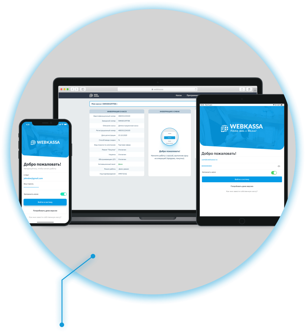 Webkassaработает с 3-х устройств. В браузере на ноутбуке, через приложение на смартфоне. Приложение доступно на iOS и Android.